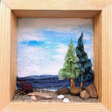 If you are intimidated with drawing or painting, explore your creativity with this mixed media collage class. Create a BC landscape shadow box art piece with textiles and natural elements (wood, moss, lichens…)
